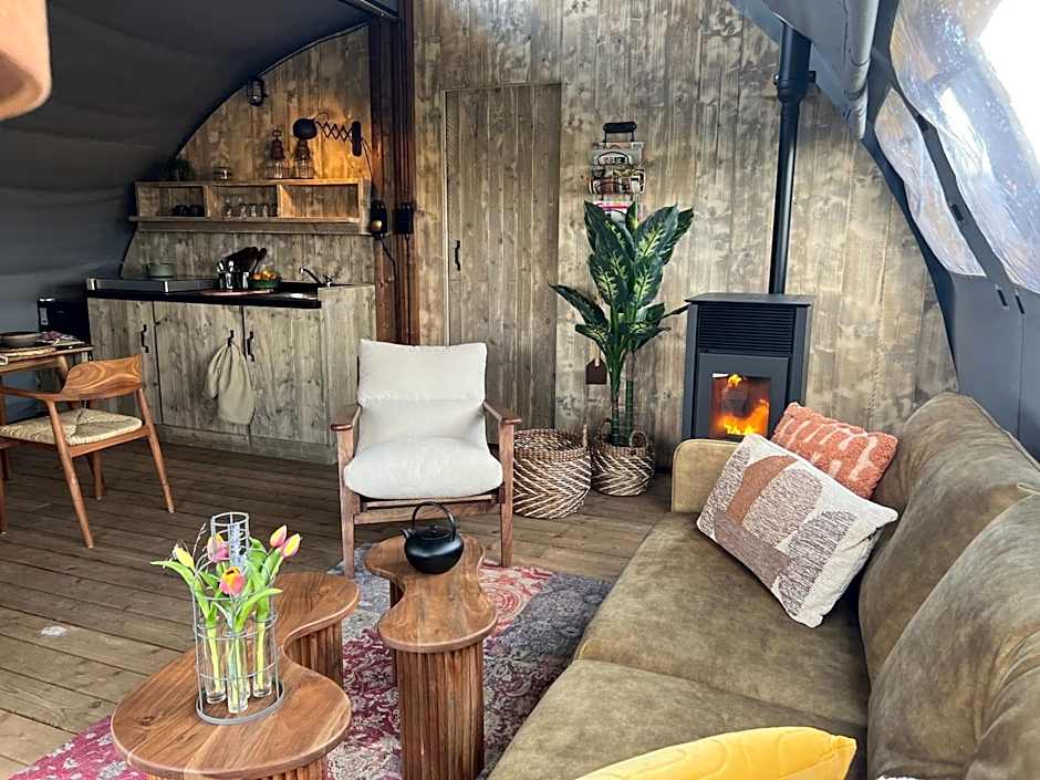 This tent features a hot tub. In the kitchen, guests will find a stovetop, a refrigerator and kitchenware. The tent offers a private entrance, a tea and coffee maker, a terrace with garden views as well as a private bathroom boasting a walk-in shower. The unit has 1 bed.